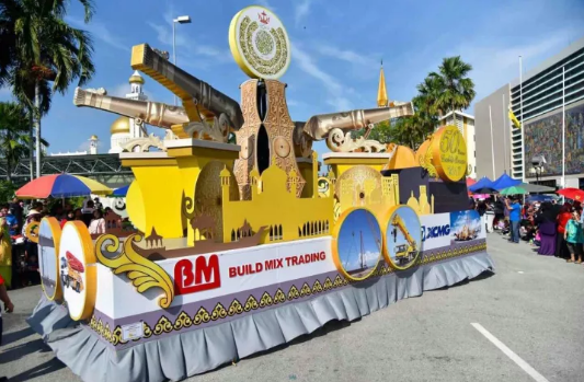 En los últimos días se hizo una gran celebración en Brunei para el 50 ° aniversario de reinado de Sultán Hassanal Bolkiah. Junto con la compañía Buil Mix Trading, un concesionario local, XCMG preparó el carro de flores con características industriales, poniendo el cañón y el escudo como la decoración principal con la representación de la defensa del territorio nacional, del país y de la seguridad del pueblo. El carro de flores de XCMG ha sido acogido calurosamente por la gente de Brunei durante el desfile y ha sido llamado como el carro de flores más creativo.