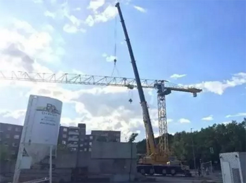 El equipo XCA100_E de XCMG realizando la instalación del brazo de izamiento de equipo de torre – Alemania Münster Kinderhaus