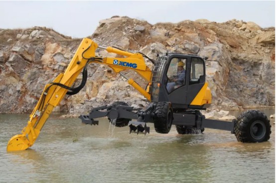 La excavadora andante de XCMG tiene el chasis único de varios grados de libertad, tiene una adaptabilidad extremadamente fuerte de trabajar libremente en las zonas de temperatura fría, de mucha altura, muy empinadas y en pantanos, y puede funcionar a -40 ° C, dando la capacidad de llevar a cabo las tareas de contra terremotos y de rescate, y ha sido considerado como ejemplar de la producción de inteligencia de los equipos de ingeniería de China. Solo cinco países en el mundo tienen capacidad de hacerlo incluyendo China que es el único país capaz en la región de Asia y el Pacífico. El programa del canal de ciencia y educación de CCTV "Me encanta la invención" tuvo un reportaje específico a ese producto. Y en otro programa “Desafío a los imposibles” de 2016 de CCTV, este producto desafió con éxito a escalar a una plataforma de 4 metros de alto, convirtiéndose en un producto famoso en el mundo por la producción de inteligencia en China.