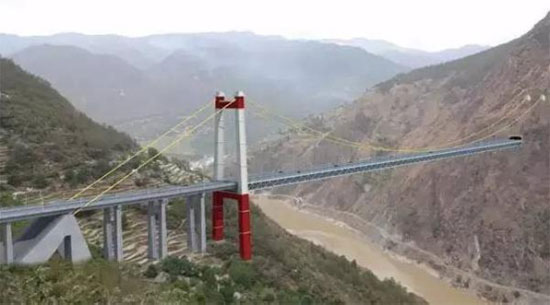 El puente del Río Jinsha en la Garganta del Tigre Salta en el medio de la Autopista Li Xiang