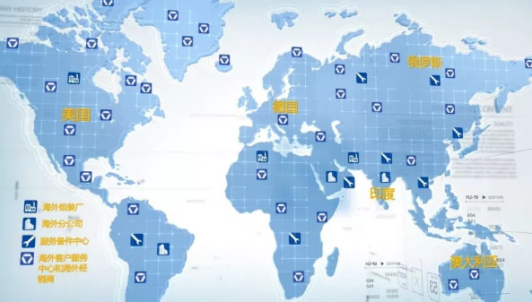 En los últimos años, el XCMG ha llevado a cabo activamente la cooperación de capacidad de producción internacional, mejorado su presencia global y mejorado sólidamente la calidad de las dos principales operaciones de modelos internacionalizados en Alemania y Brasil. Ha fomentado el crecimiento de gerentes de mercado, gerentes de producto, gerentes comerciales y gerentes de servicios. El equipo expande continuamente sus posiciones en el extranjero y el mercado global. El XCGM ha dado paso a un período dorado sin precedentes. En la actualidad, los productos del XCMG se exportaron a 179 países y regiones de todo el mundo. El volumen total anual de exportación superó los 1.600 millones de dólares, representando más del 30% de los ingresos totales del exterior, y el valor de exportación se mantuvo como líder del sector durante 29 años consecutivos.