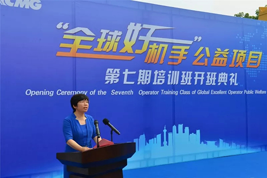 Sra. Gang LI, la subsecretaria del Comité del Partido del XCMG, da la bienvenida a la llegada de conductores nacionales y extranjeras, y espera la experiencia de participantes de capacitación a través de una variedad de módulos de entrenamiento característicos, pueden percibir el nuevo modelo de fabricación inteligente en la era "Internet +" y siente que la connotación cultural como tranquilo, innovador extremadamente, responsabilidad de la misión y siente el sentimiento de responsabilidad como ¨el XCMG hace que el mundo sea mejor¨, probando las dos culturas de HAN para que sea testigo de la fuerza de fabricación inteligente y la calidad de clase mundial del XCMG.
