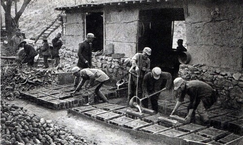 (Año 1943, en el principio de construcción del cuerpo anterior de XCMG – Octavo Arsenal de Lunan, los soldados estuvieron vaciando los cuerpos de granadas)