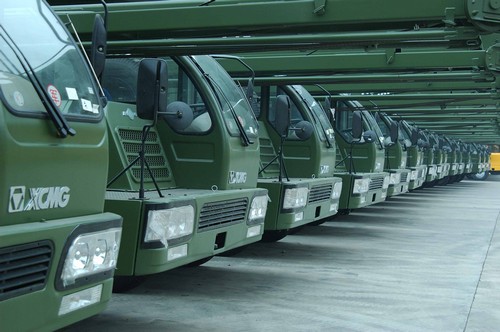 (Camiones grúa militares de XCMG listos en marcharse)