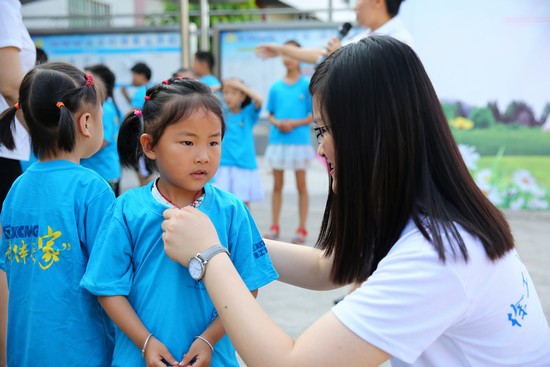 El sol ardiente no detuvo el entusiasmo de las personas en participar en el evento. Entre los invitados presentes, además de Liu Yifan-el secretario general de la Liga de Juventud del Partido y varios voluntarios de XCMG (Grupo de Maquinaria de Construcción de Xuzhou), también estaban presentes Zhao Long-el subdirector de la división de derechos del Comité Provincial de la Liga de Juventud del Partido de Sichuan; el subdirector del Centro de Servicios Sociales de las Organizaciones y Asociaciones Provinciales; el director del Proyecto del ¨Plan de Compañía de Niños¨, Liu Shengquan- el secretario adjunto de la Liga de Juventud del Partido del Distrito Zizhong, Zhu Feng- el director de la Oficina de Cooperación Empresarial de la Fundación Nacional de Mitigación de Pobreza de China (CFPA), Yuan Li-el alcalde del Condado Gaolou del Distrito Zizhong, los representantes de ¨mamá de compañía de niños¨, así como de los centenares de niños locales abandonados en zonas rurales y representantes de los aldeanos.