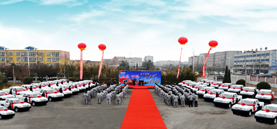 On February 28, the launch ceremony for XCMST “China Service Tour 2011” and the dispatch ceremony for 106 service vehicles were held in Zhengzhou. Meng Wen, deputy general manager of Xuzhou Construction Machinery Science and Technology Co., Ltd. (XCMST) and general manager of the Marketing Company of XCMST, was present. Liu Zhumin, general manager of Henan Luyou Construction Machinery Co., Ltd., attended the ceremonies as a distributor representative.