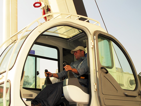 On the afternoon of that day, distributors and key accounts came over to an open area outside the bonded zone of Victoria, which was the site of the XCMG Experience Day for Brazilian Users. At the entrance to the site the banner of "The First XCMG Experience Day for Brazilian Users" was strikingly flying. The five all-terrain cranes and truck cranes were arranged one by one on the left side of the central road of the site, three stretching all their arms upwards and two hoisting their main jibs up in an imposing phalanx. The cabs of QAY240, QY110K and QY90K were different from normal ones, for they were so fixed as to command the jib nose, allowing the cranes a convenient observation of the hoisting process. On the right side QUY 260 crawler crane stood in great state, and the name label on it revealed that it had been delivered to the client. At the end of the road there was a tent with an area of about 200 m2, which was set up to offer a temporary place for tea break. To its right side were two XS120 vibratory rollers, XE210 excavator and ZL30 loader, all extending their arms as if greeting friends from all over Brazil.