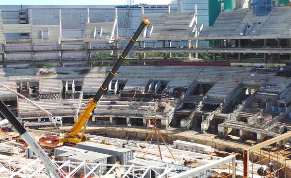 Подъёмник XCMG во время строительных работ на стадионе Арена Фонте-Нова в Сальвадоре