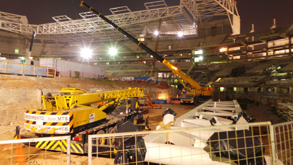 Подъёмник XCMG во время строительных работ на стадионе “Коринфян” в Сан-Паулу