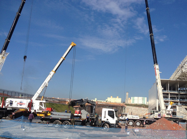 В конце 2013 года падение 1500-тонного гусеничного крана одного европейского бренда раздавило часть корпуса стадиона “Коринфян”. На помощь пришла XCMG, оборудование которой не только учавствовало в процессе спасения ситуации, но также успешно заменило сломавшуюся технику. После строжайшей проверки право на строительство данного стадиона получил бразильский клиент, владеющий около 10 .автокранов и малотоннажных гусеничных кранов XCMG. Качественно оборудование XCMG обеспечило быстрое построение стадиона, получив положительные отзывы как организатора, так и рабочего персонала.