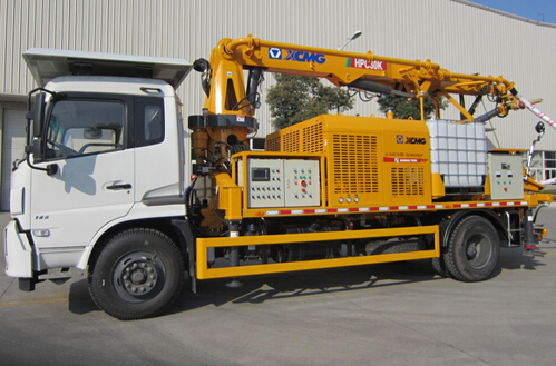 Торкретообрызгивающий автомобиль HPC30K объединяет три функции: ходьбу, бетон насосной, извержение в одном, предназначено в основном для строительства крупных участков железной дороги, автомобильных туннелей, наклона, водного хозяйства и тоннеля гидроэнергетики и подземных труб и различных военных, гражданских и других подземных инженерных областях, Продукт сочетает в себе ведущую технологию Schwing — всесторонный гидравлический реверс, что сэкономит время коммутации на 40%, насосная непрерывность и эффективность увеличилась на 5%, поток через основной объем клапана уменьшается на 50%, по весу сократился на 50%, уменьшить гидравлические потери 0,5 МПа или более. На нем применяются контроль обратной связи с помощью новой шины дистанционного управления системы, новый дисплей панели обратной связи, интерактивная конфигурация NC операционной системы, мокрый ввод данных спрей и хранение записей через взаимодействие человека с компьютером, состаяние эксплуатации, дисплей эксплуатационных данных и предупреждений о неисправностях. Позиционер составляет из форсунки в сборе и стрела в сборе, при помощи 360° вращающегося цилиндра, 180° цилиндра отклонения, 8×360° вовсю салфетки моторных и других компонентов, пространственная ориентация действительно осуществляет многомерное направление полярной изменение, в сочетании с его кузовом смарт-дизайниа двумя энергосистемами, так ходить, работать эффективно, удобно, становятся «универсальным торкретообрызгивающим оборудованием XCMG» для строительства наклона, тоннелей и других бетонных распыления полей, многомерных малых космических операций.
