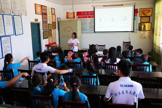 Пылающее солнце никак не удерживает энтузиазм участвующих: кроме секретаря комсомольского комитета Группы компаний XCMG Лю Ифана и многих добровольцев, замминистра органа прав и интересов провинции Сычуань и начальник объектного кабинета «План сопровождения детей» Чжон Лон, замсекретарь комсомольского комитета уезда Цычжун Лю Шенчуань, Начальник кабинета сотрудничества между предприятиями Фонда поддержки нищеты КНР Чжу Чжанфэн, начальник города Gaolou уезда Zizhong Юань Ли, представители «мамы-сопровождающие детей», несколько сотен брошенных детей и представители жителей села.
