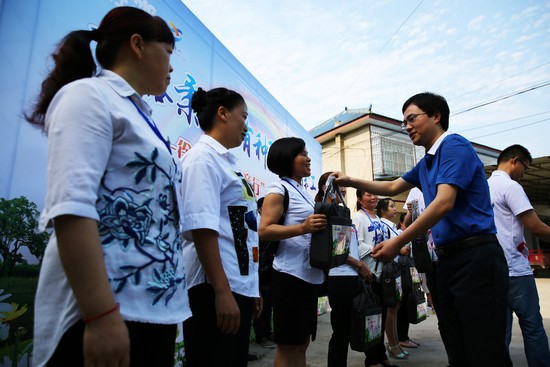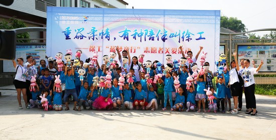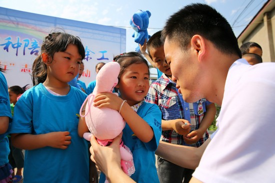 Наступил июнь, на улице в уезде Цзычжун очень жарко, 4 июня необыкновенно буйной стало на площади в селе Цинлян. Потому что утром этого дня торжественно провели церемонию открытия деятельности “домброшенныхдетей”молодые волонтеры из группы компании XCMG.