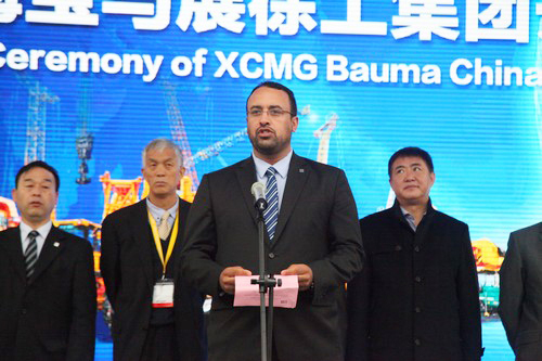 На церемонии открытия, председатель Ассоциации производителей строительной техники Китая Ци Цзюнь в своем выступлении сказал,что корпорация XCMG, как представитель самых выдающихся лидеров в отрасли, на этой выставке выступала с темой «С душой и умом производим для Вас», полностью показал новую мощь заслуживающую доверия мирового поставщика услуг по решениям строительного оборудования и продемонстрировала высококлассный интернационализованный авторитет товарной марки с высшими стремлениями к «качеству, инновациям, ценностям, ответственности». Председатель правления Ван Минь представил передовой золотой стандарт отрасли «технологическое лидерство не разрушить», твердо взял на себя инновационную инициативу,продвигаясь по высококлассному международному пути развития, еще раз демонстрируя переключение на модернизацию производственных предприятий Китая, бок о бок с высококлассной первоклассной решительностью и смелостью.