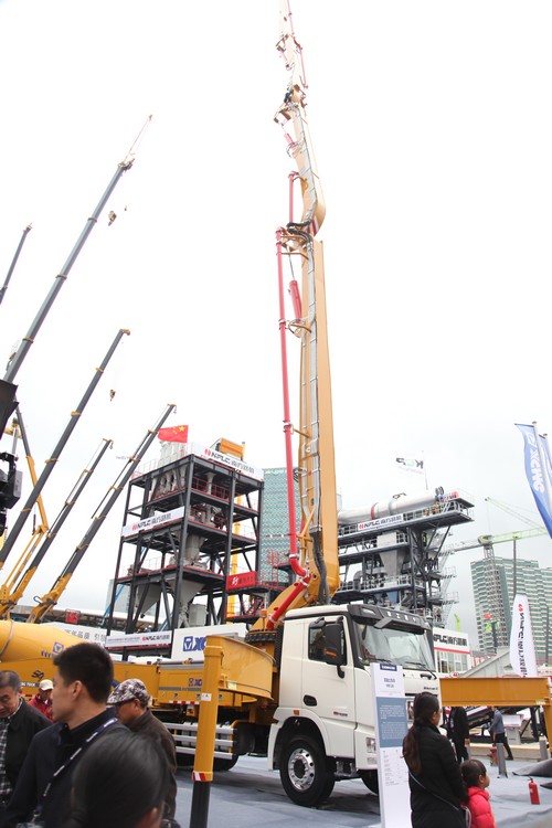 В то же время, XCMG на этой выставке Китая также презентовала первый в стране независимо исследованный и разработанный и успешно применяемый двухколесный шпоночно-фрезерный станок XTC85, автомобильную насосную установку HB52K платформы товаров S9 совместной китайско-немецкой отрасли, первую в мире автоматическую и полностью гидро пневматическую подвеску, восьми осевой самосвал всех горных поверзностей и первую в Китае машину подземного копания TWZ260, самую высокую по тоннажу в Китае телескопическую стрелу автомобильного подъёмного крана SQS625A и ряд флагманских товаров в отрасли.