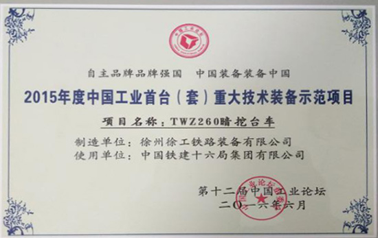 В 2015 году китайская промышленность впервые удостоилась премии демонстрационного проекта в области важного технического оборудования