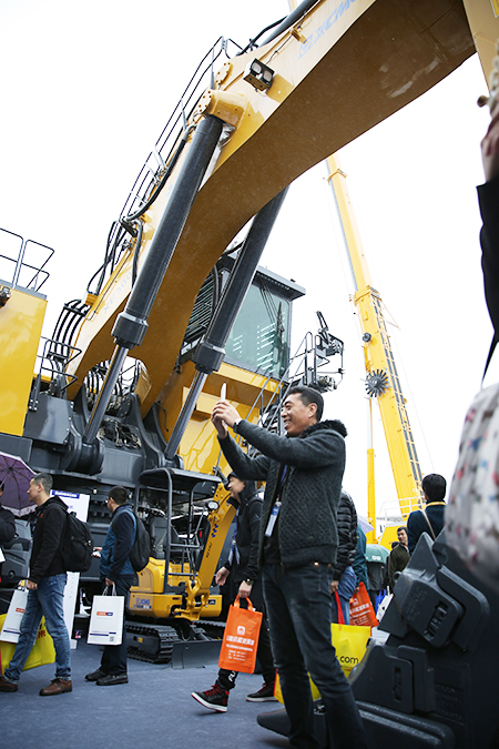 Вступив в новый международный выставочный центр в Шанхае, ''Золотой XCMG'' особенно ослепил. XCMG, вступив в павильон, высокой поднял голову, хорошо сложенный внешне, привлекает внимание многочисленных зрителей. Этот ''новый фаворит'' - тяжеловесный гидравлический экскаватор XE3000, который презентовал XCMG. Шахтный герой, сияюший, поднявшийся на стену! Перед 300 тоннажным ''шахтным героем'' все зрители в замедлении остановились осмотреть или повторно устроили осмотр, или сделали групповую фотографию.... Гидравлический экскаватор XE3000 обладает очень большим объёмом ковша в 15 кубических метров, любопытные посетители в конце концов поняли суть ковша. ''Только что несколько посетителей спросили нас, можно ли опустить ковш и они сядут в него и выпью чашечку кофе, сфотографируются''. Инженер XCMG сказал: ''кто-то хочет, чтобы мы были заполнены водой изнутри, у всех действительно огромная фантазия на ковш экскаватора!''