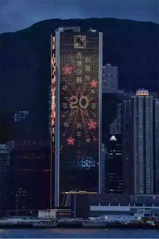27 июня, По окружности здания Бухты Виктория в Гонконге выбит слоган в честь 20 летней годовщины возвращения Гонконга на Родину
