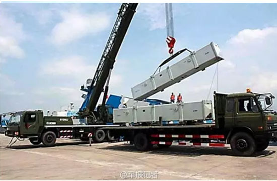 Подъемный кран XCMG поднимает военные товары на борт авианосца