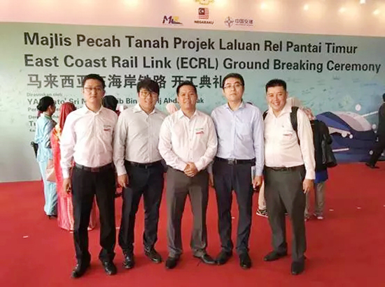 В первой половине дня местного времени 9 августа в Малайзии состоялась церемония по началу строительства железнодорожного проекта на восточном берегу в Малайзии, полученного подряд на постройку Китайской национальной корпорацией строительства коммуникаций. Член Китайского Госсовета Вань Юн и министр Малайзии Наджиб вместе участвовали в церемонии и выступили с речью, более 5000 участников из разных кругов обществ из двух стран Китая и Малайзии участвовали в данном событии, Корпорация XCMG в качестве представителя отрасли механической техники, также участвовала в церемонии по приглашению.
