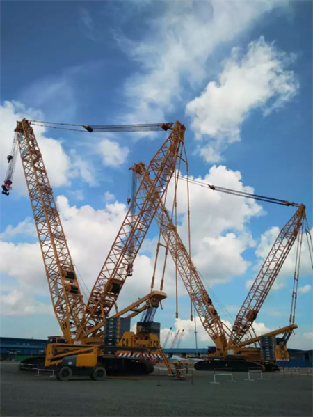 Самый крупнотоннажный кран гусеничного типа XCMG XGC16000 в стране и в экспортной продукции помогает в строительстве морского объекта в Индонезии