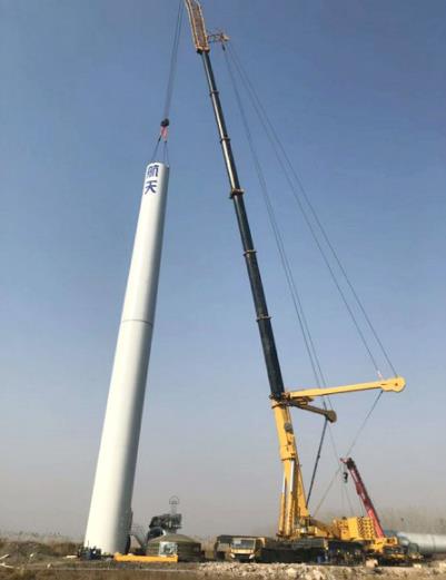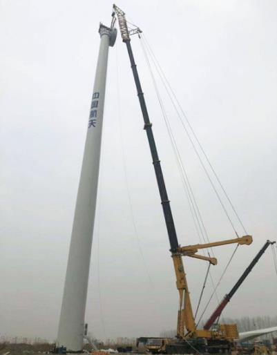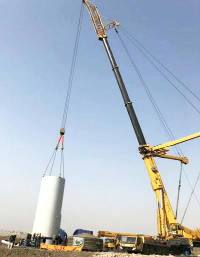 Проект монтажа для ветроэнергетики это работы в области ветроэнергетики с достаточно сложными условиями, они сильно отличается отрежима работы основной стрелы, используемой в прошлом. Фактические параметры ветряной установки мощностью 2,0 МВт достигли международного стандарта в 2,5 МВт. Независимо от высоты подъема или веса кабины, это серьезныйвызов для вседорожного подъемного кранаQAY1200AXCMG.