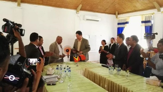Посол Китая в Восточном Тиморе Лю Хунсян и министр по государственным делам и министр Министерства сельского хозяйства Восточного Тимора, господин EstanislauAleixo da Silva участвовали на церемонии передачи проекта поддержки