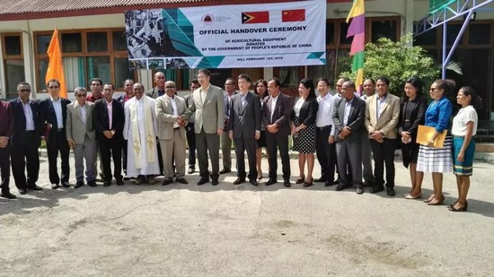 Еще в первой половине 1 февраля 2018 года, церемония передачи сельхозмашин, которые Китая поддерживает Восточному Тимору, была открыта в Министерстве сельского хозяйства торжественно. Посол Китая в Восточном Тиморе Лю Хунсян и министр по государственным делам и министр Министерства сельского хозяйства EstanislauAleixo da Silva присутствовал на церемонии передачи и выступил с речью. Заместитель министра Министерства сельского хозяйства Восточного Тимора Делиньдр, госсекретарь Сиприяно и другие официальные чиновники и представители китайских предприятий, ответственные лица всемирной продовольственной и сельскохозяйственной организации и так далее присутсвовали более 100 чел. на церемонии передачи.