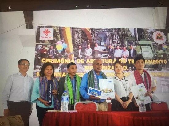 Оборудование, поддержанное в этот раз, включает 18 видов оборудования, такие как экскаваторы XCMG, сельхозмашины ZOOMLION, всего 122шт., общая стоимость которых составила 9 млн. юаней, корпорация XCMG направила коллектив технического обслуживания в составе 8 чел., чтобы провести обучение местных операторов. Министерство сельского хозяйства Восточного Тимора выбрало 30 операторов сельхозмашин со всех концов страны для участия в данном обучении. Господин министр сначала выразил советнику Лю благодарность за Китайское Правительство, и надеется, что через данный проект поддержки можно провести сотрудничество с такой высококачественной корпорацией XCMG.